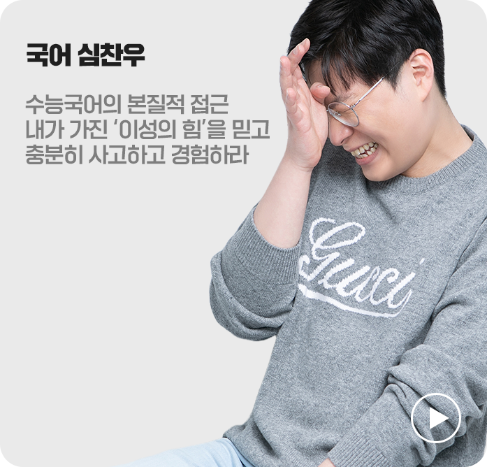 결과만을 위해 달려가라고 하는 수능 입시판에서 과정의 본질과 그 의미에 더 집중할 수 있게 해주신, 나아가는 과정에서 인간으로서 성장할 수 있게 도와주신 심찬우 선생님께 너무 감사드리다는 말씀 전하고 싶습니다!