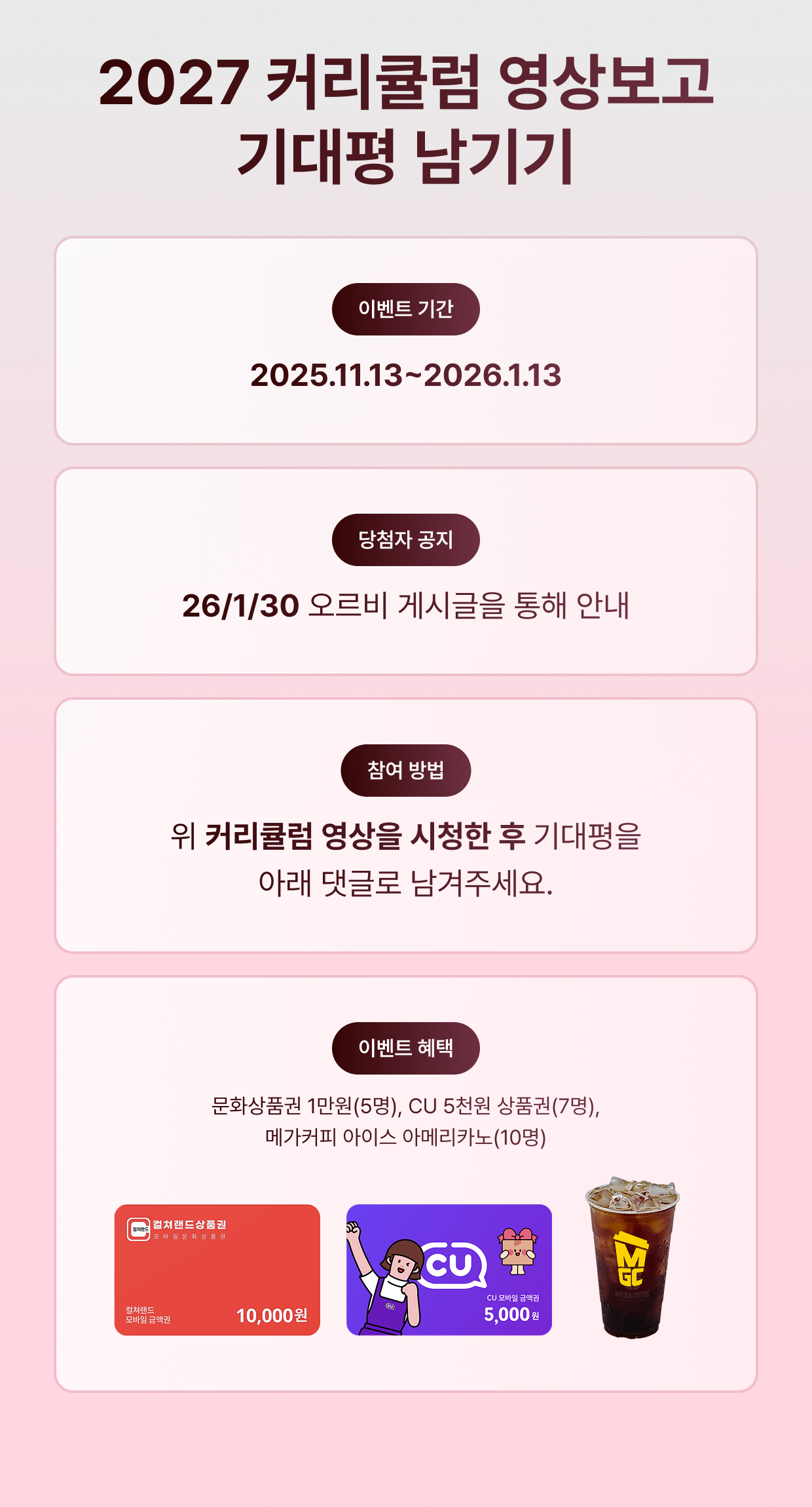 당첨자 공지: 2026년 1월 30일(금) 오르비 게시글을 통해 안내